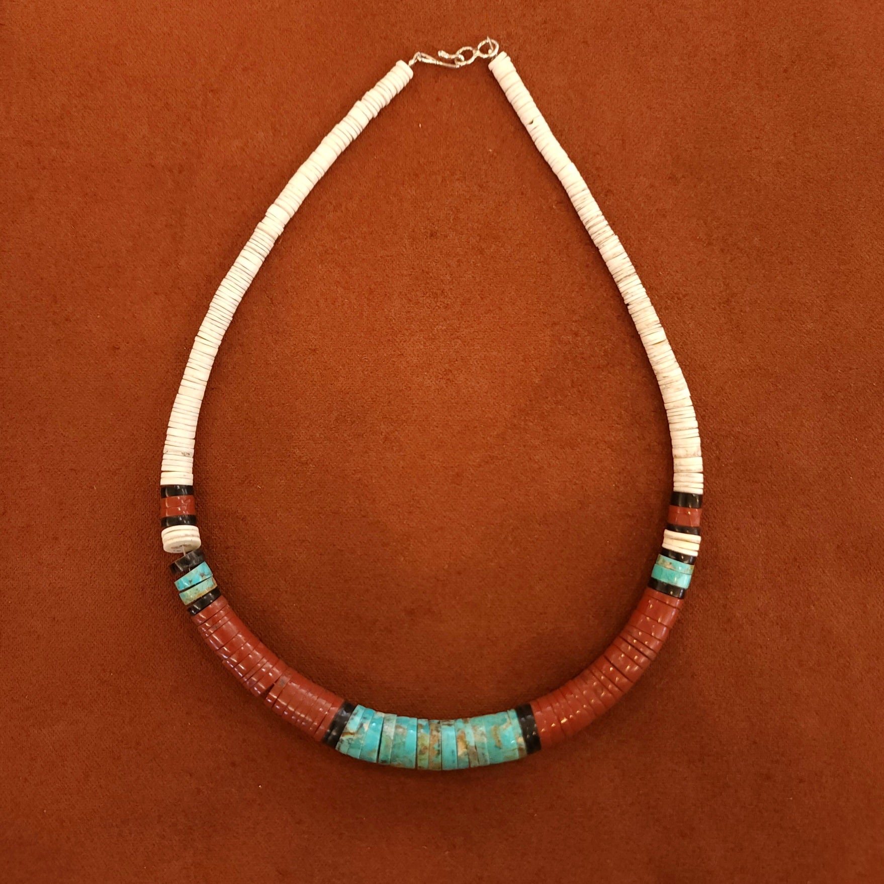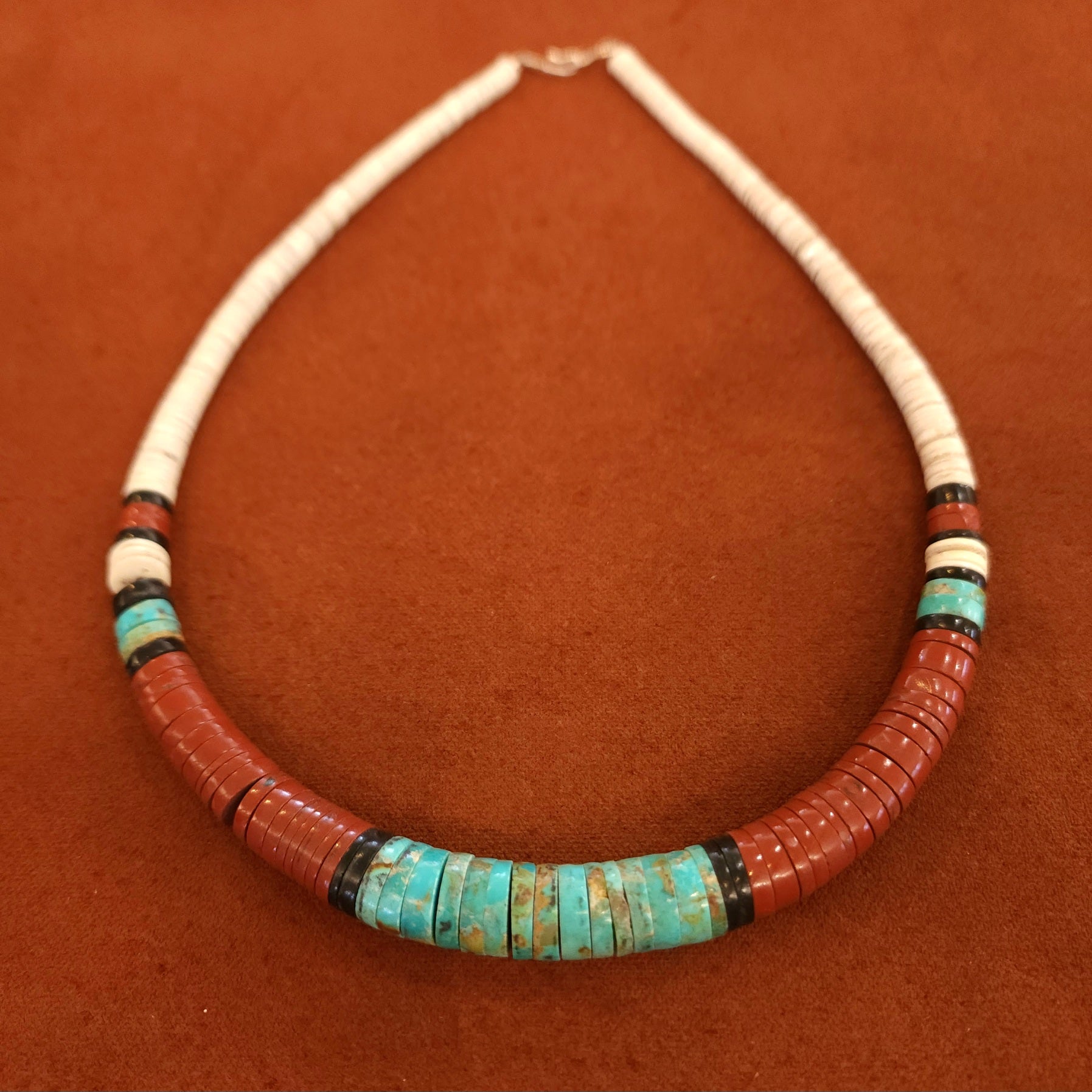Kewa Pueblo Hand-rolled Beads Necklace - 20" Long