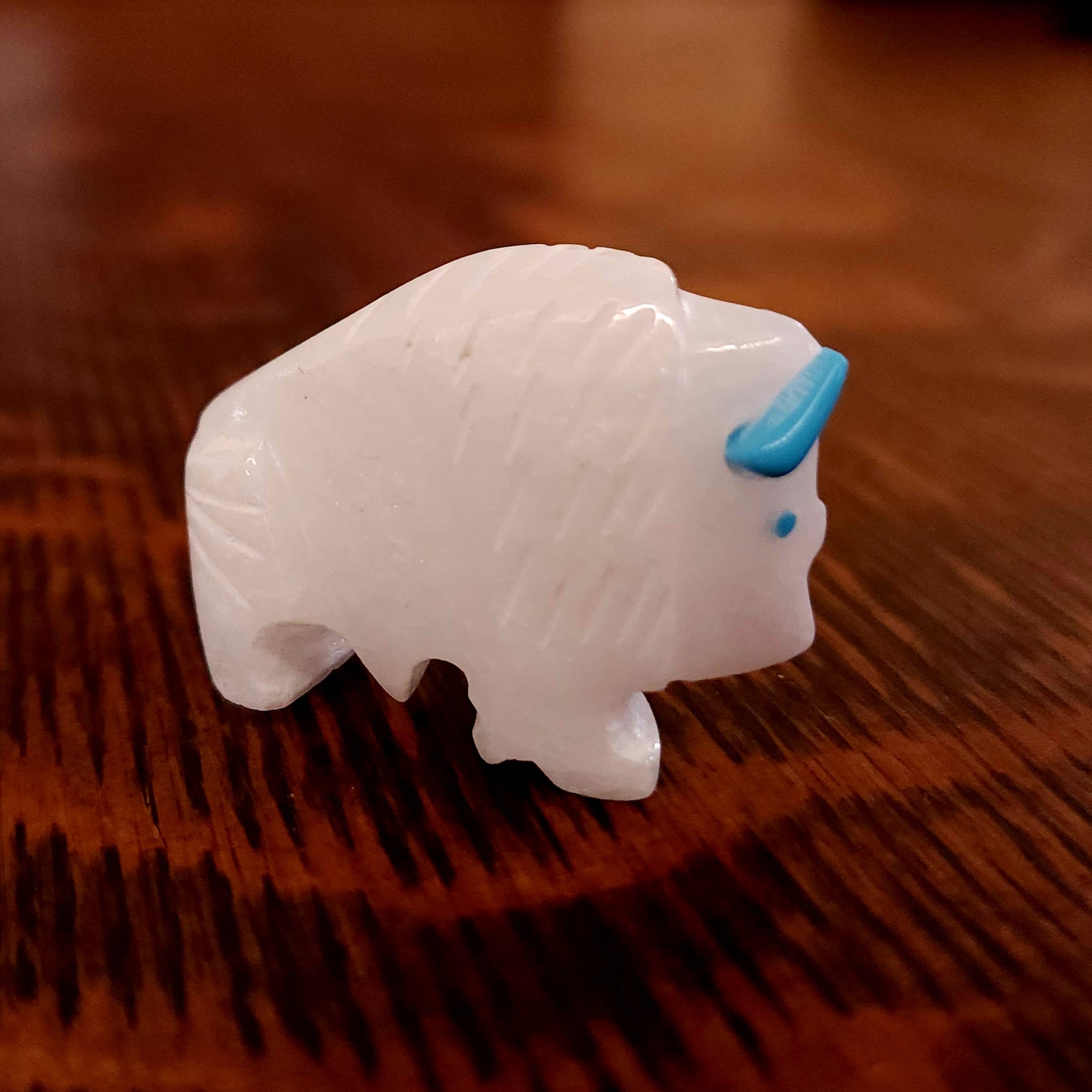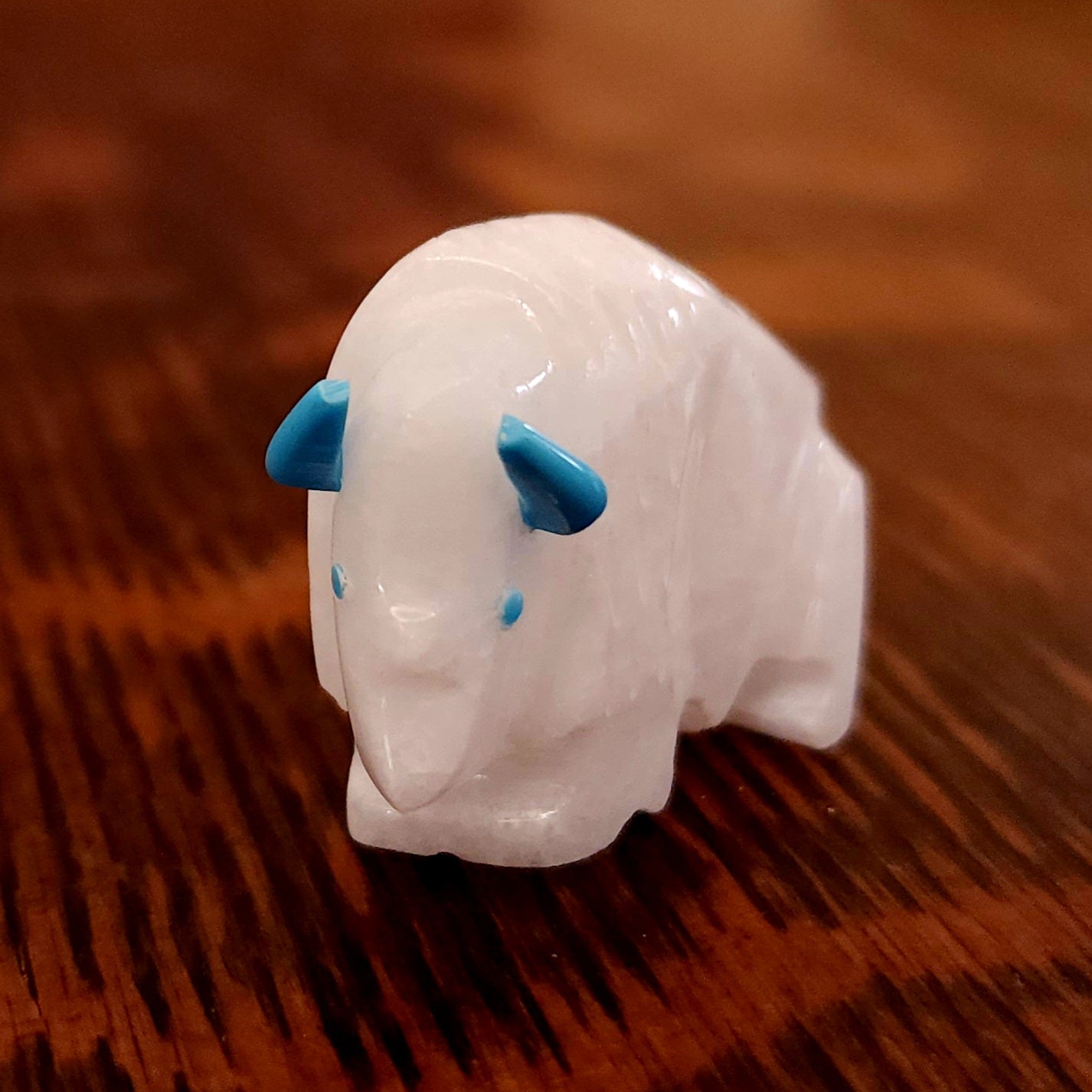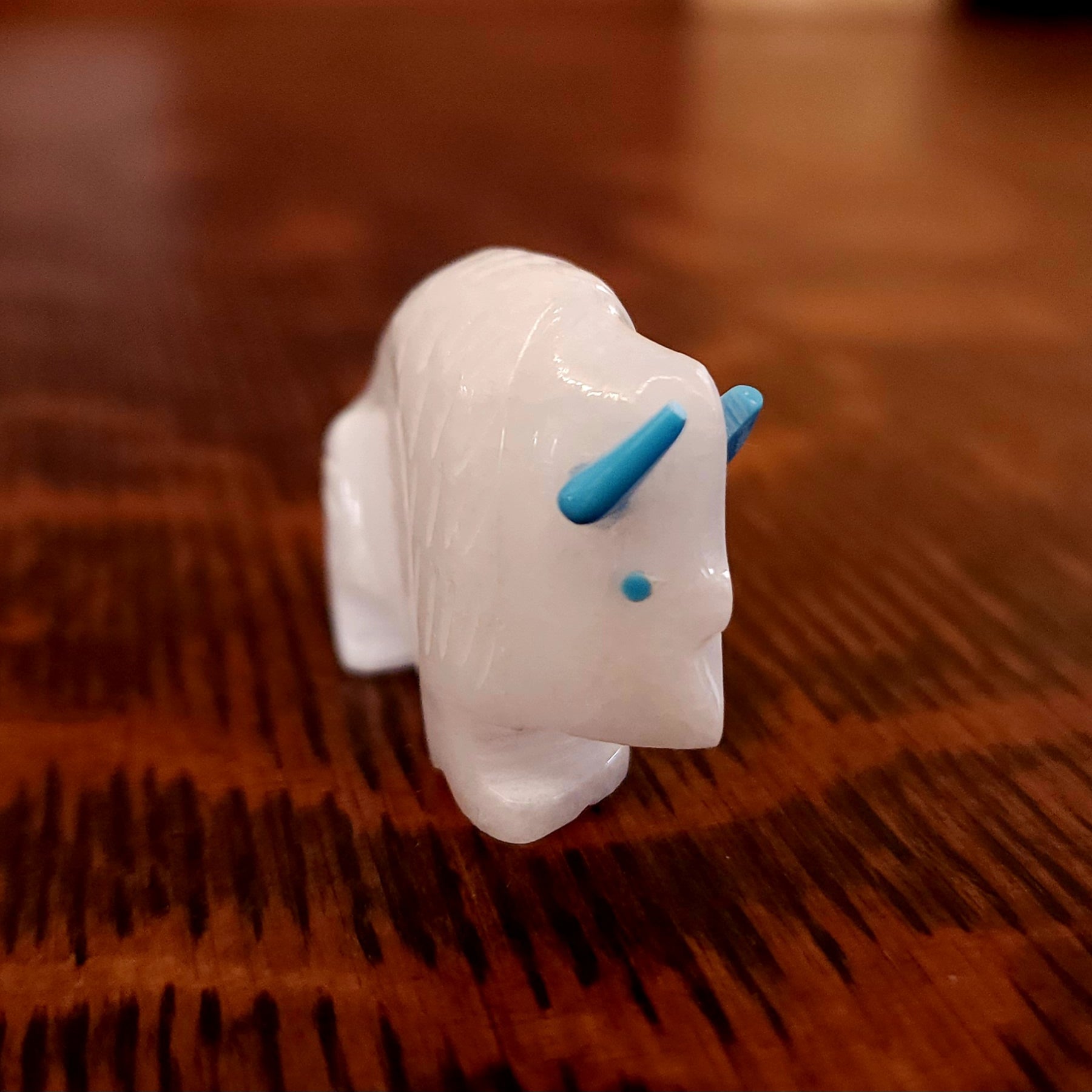 Michael Horse, painted this wedding scene. The woman, Little Deer, and man, Bull Buffalo, are wrapped in a blanket during the ceremony. The red lines coming from their mouths indicate they are speaking. The holy man raises his eagle fan in blessing while the eagle flies overhead to witness and take the prayers and the couple's words of commitment to the Creator.
