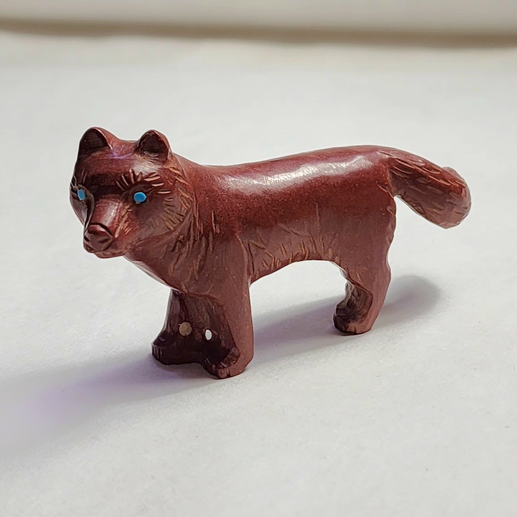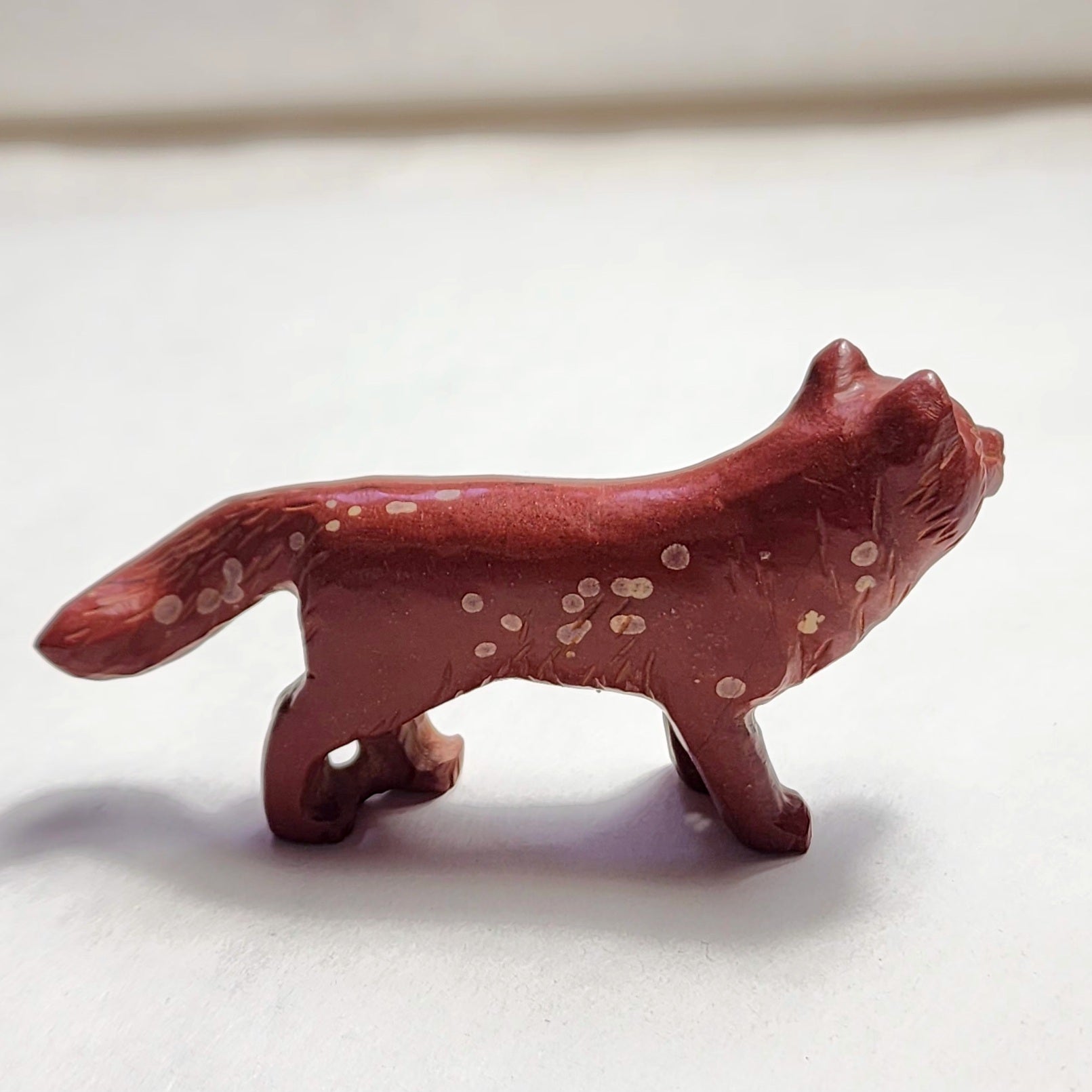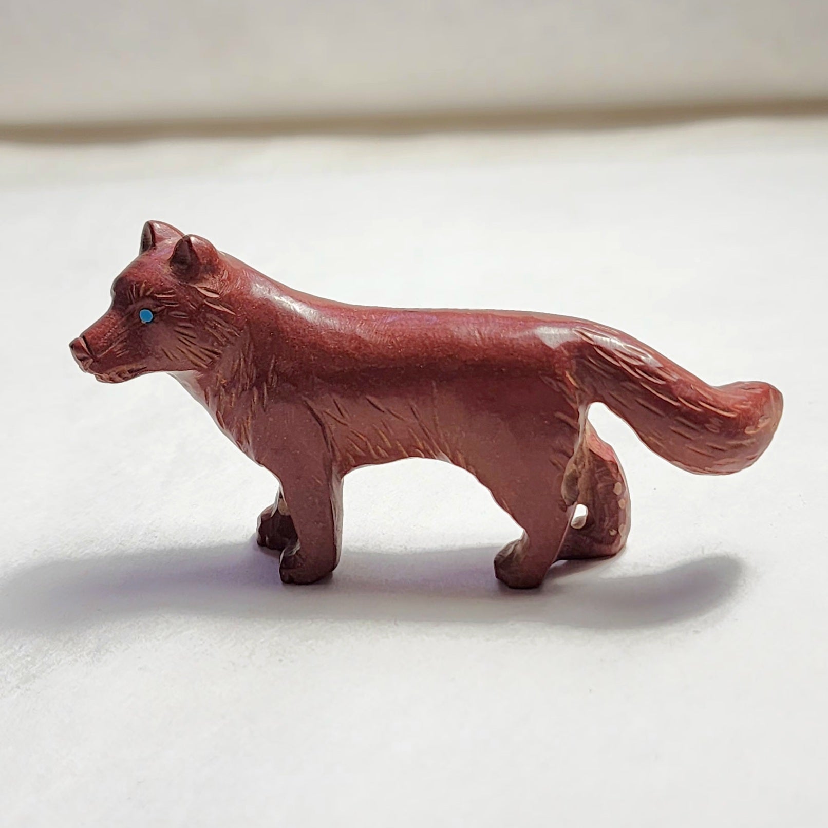 Wolves, coyotes and foxes all look the same in the distance. In Zuni there is a word that translates into "bushytail" in English. You get to determine what this carving looks like to you!