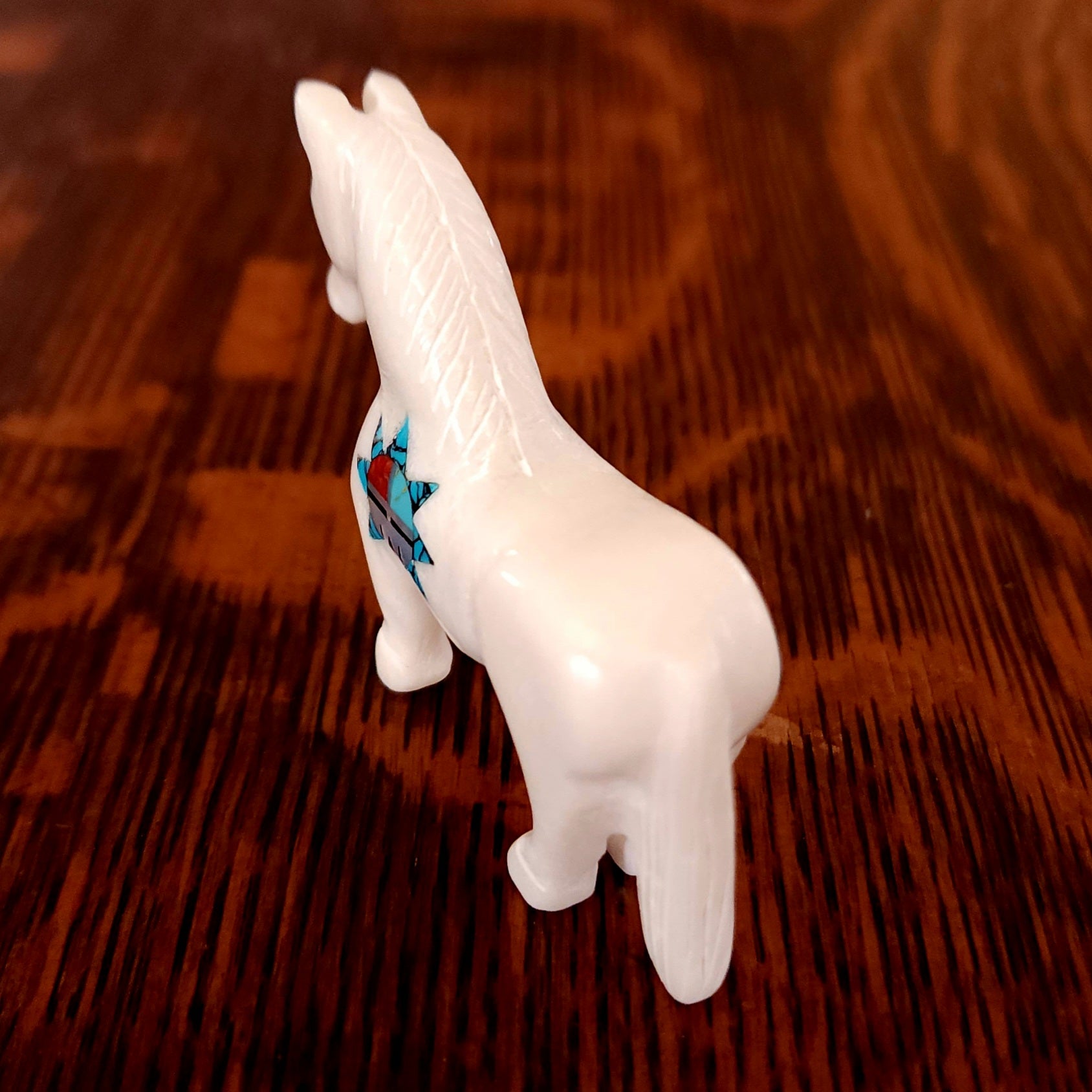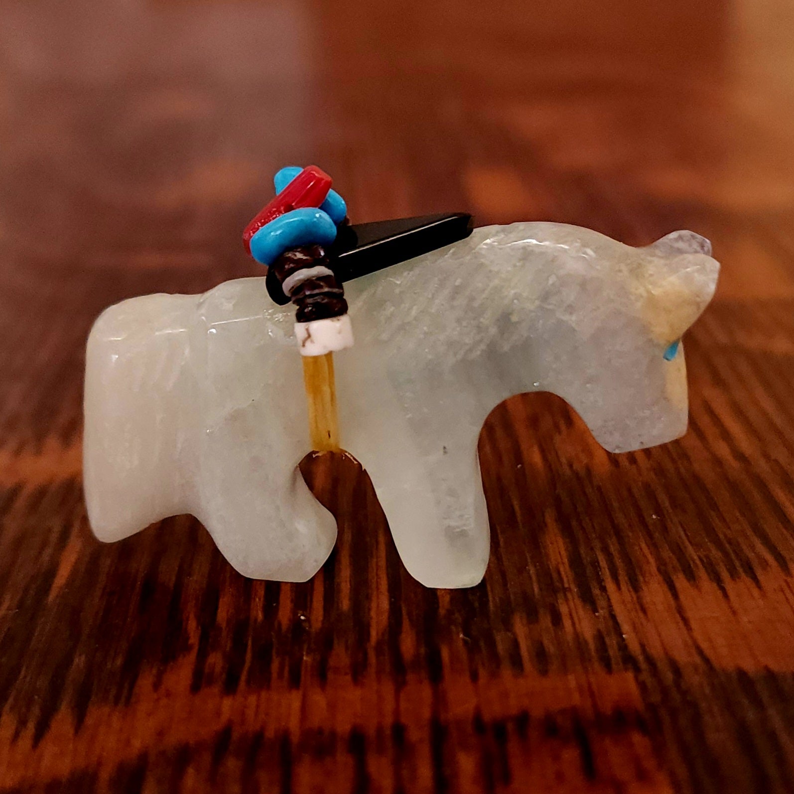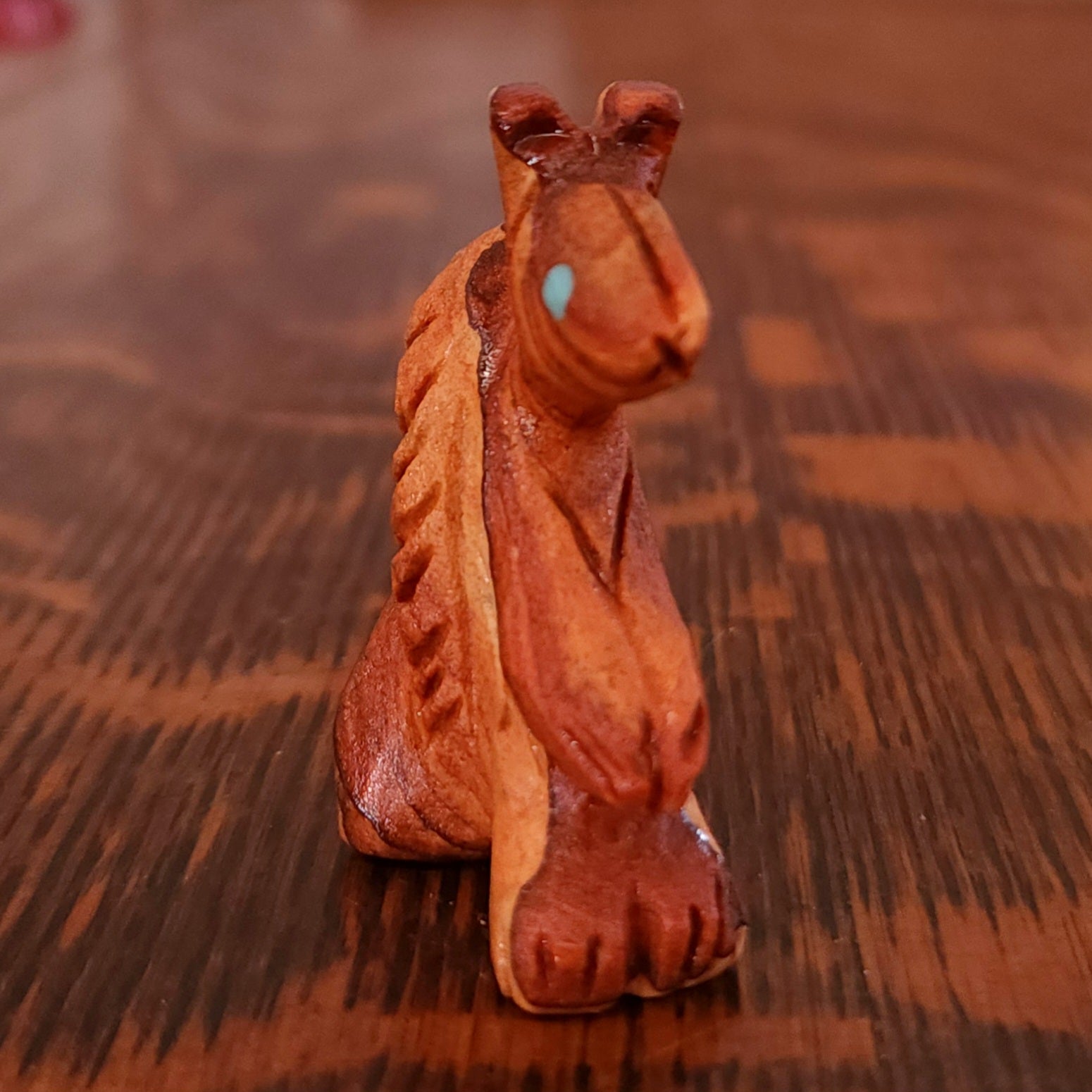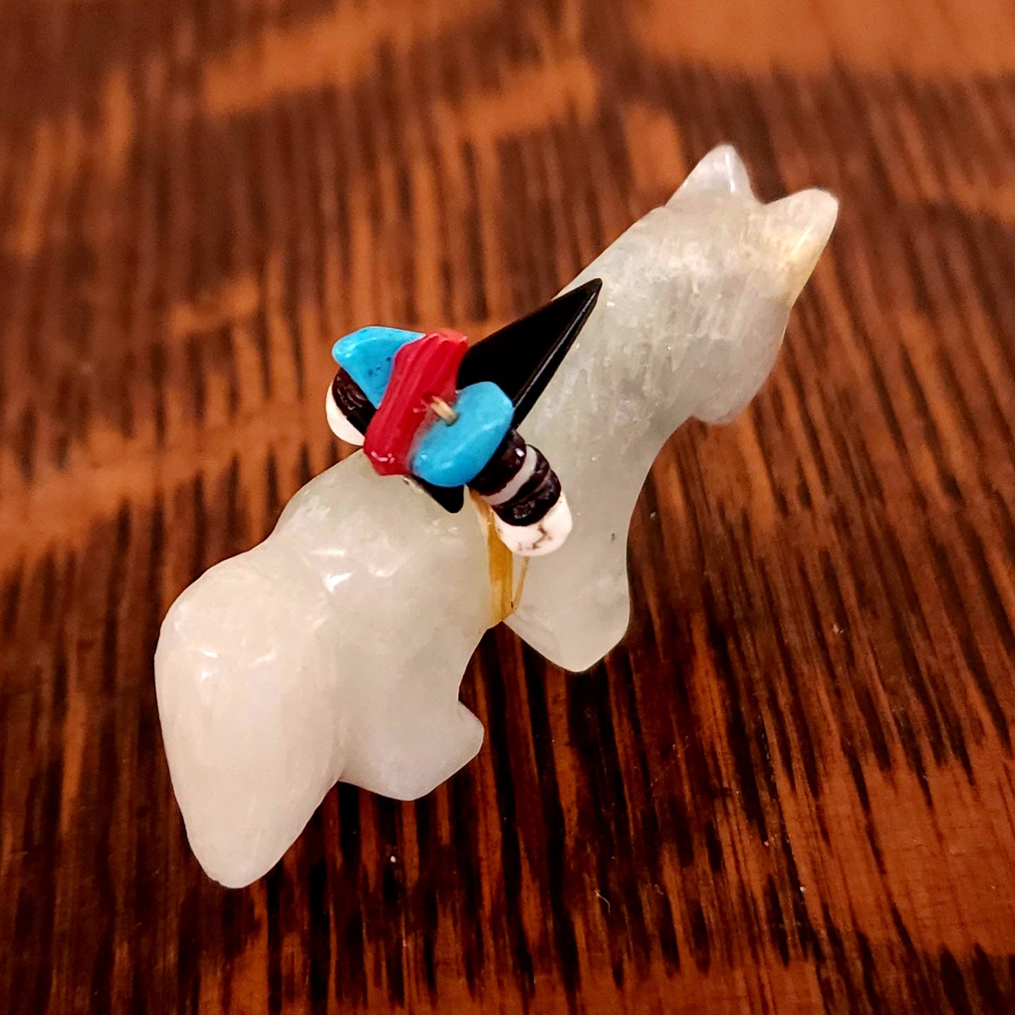 Wolves, coyotes and foxes all look the same in the distance. In Zuni there is a word that translates into "bushytail" in English. You get to determine what this carving looks like to you!