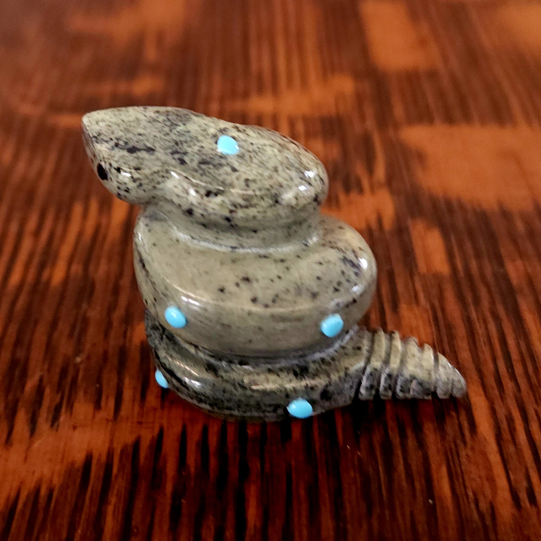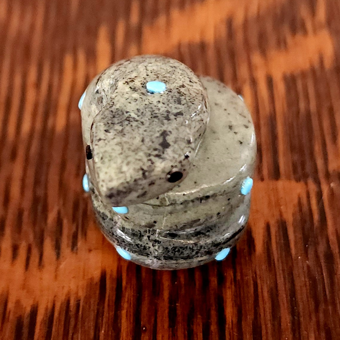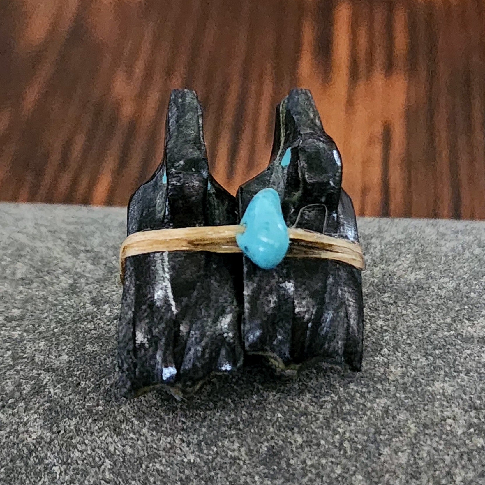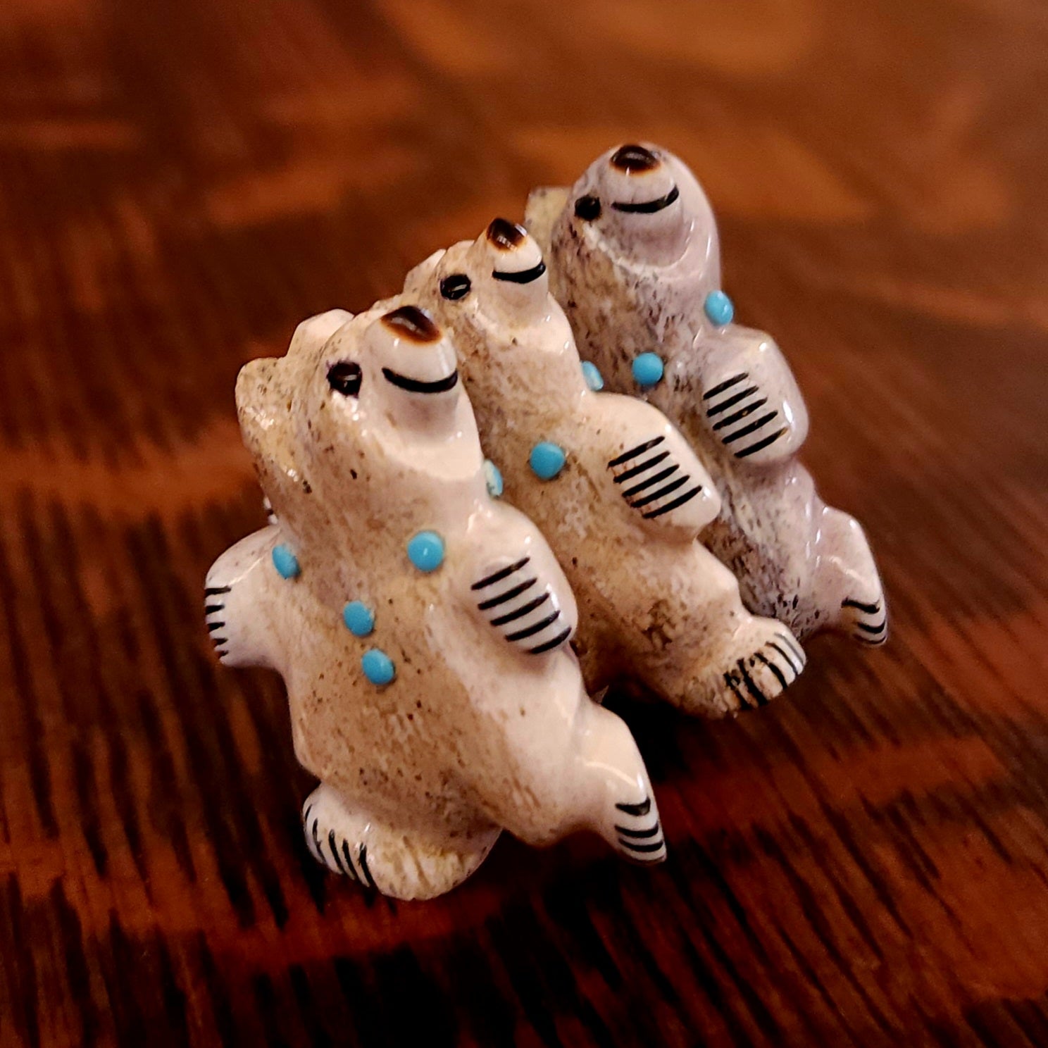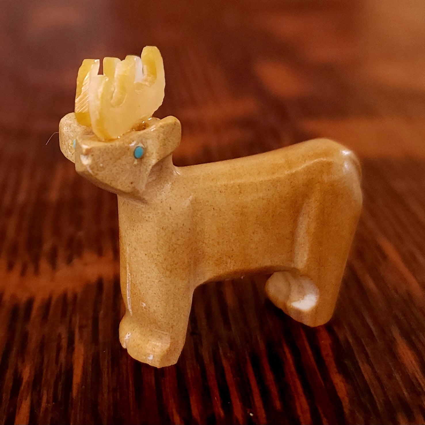 Traditionally, Zuni carvings are symbolically fed cornmeal. Each Zuni fetish comes in a box with a descriptive card and a tiny bit of corn meal to tide them over until they reach you.