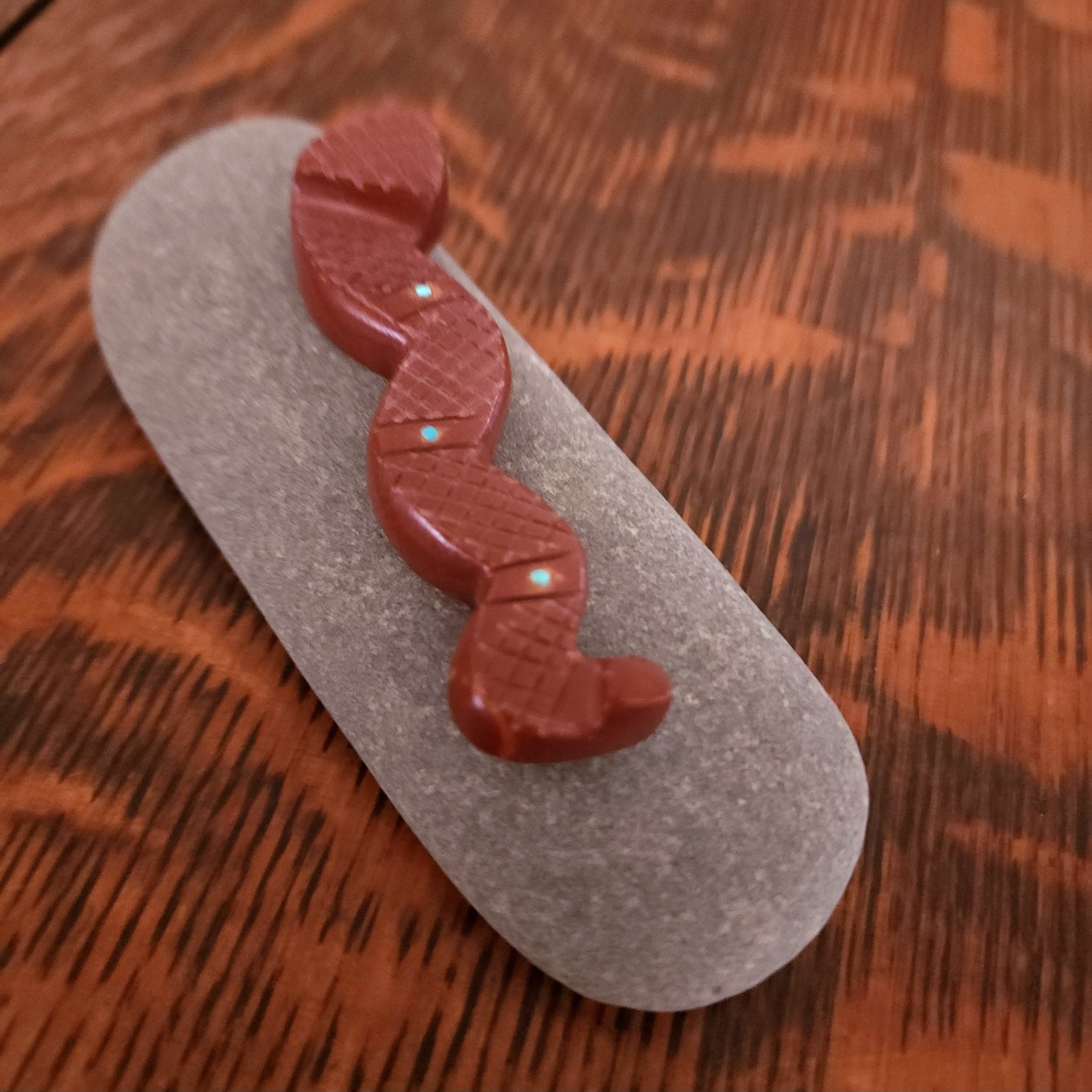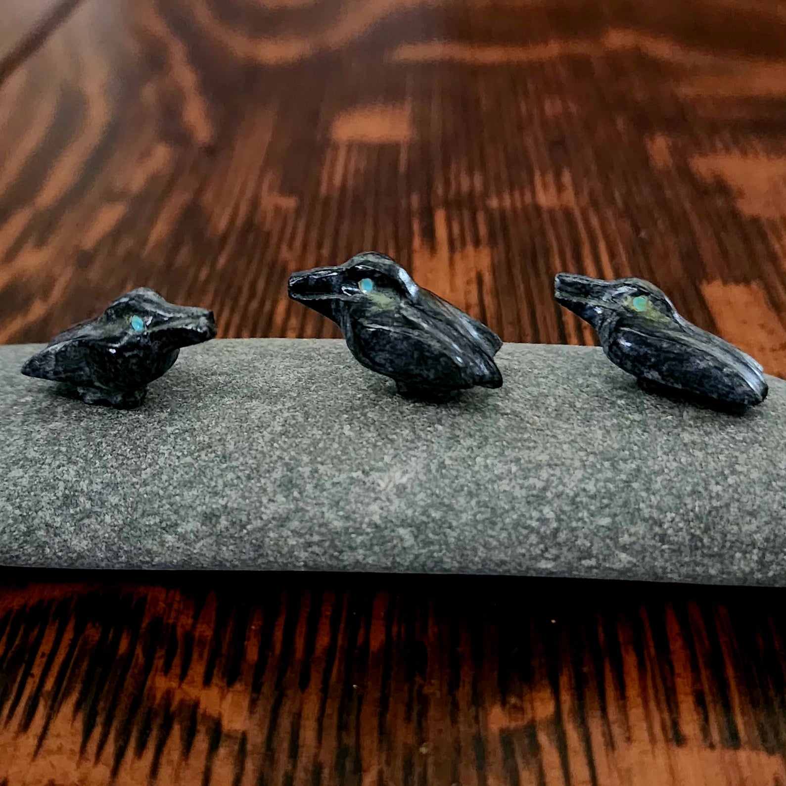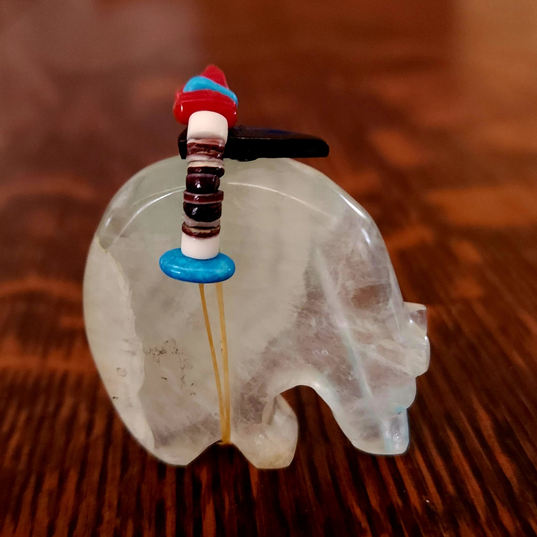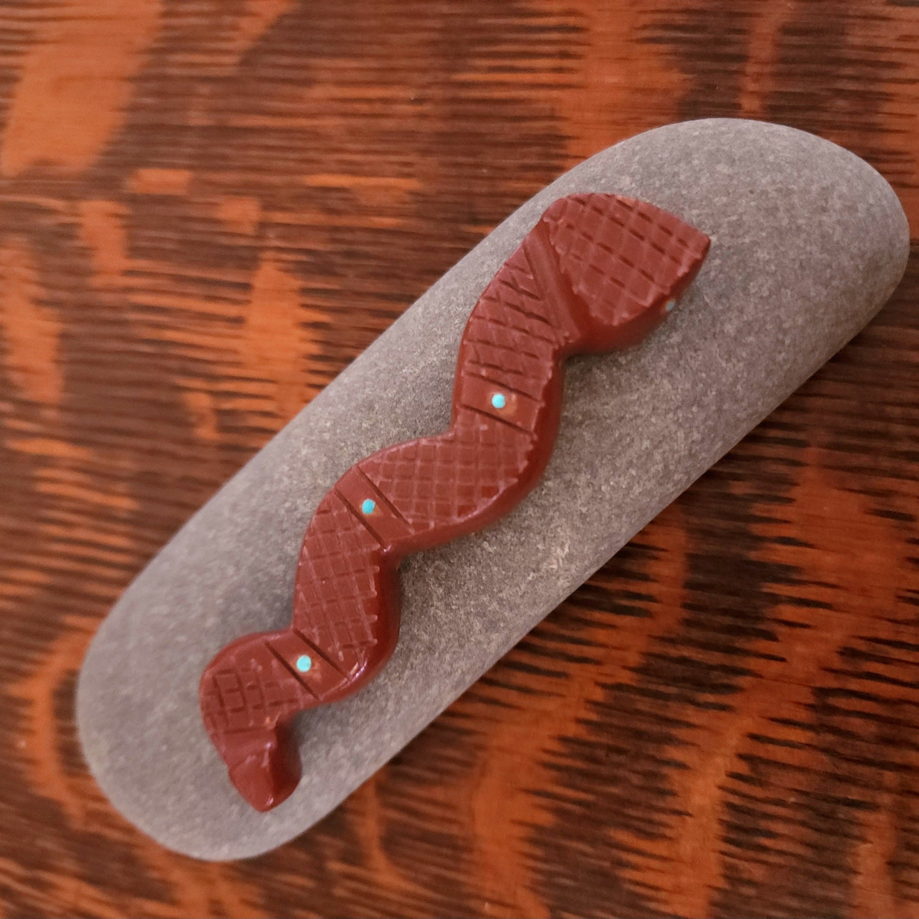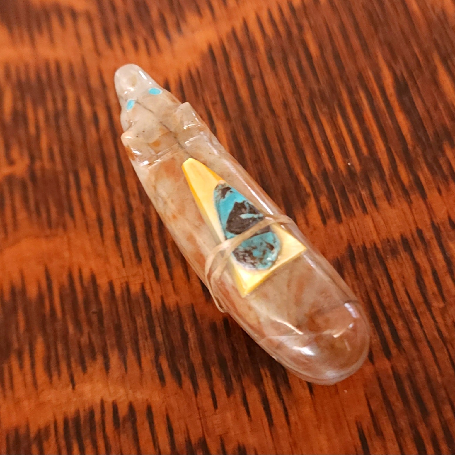 Traditionally, Zuni carvings are symbolically fed cornmeal. Each Zuni fetish comes in a box with a descriptive card and a tiny bit of corn meal to tide them over until they reach you.
