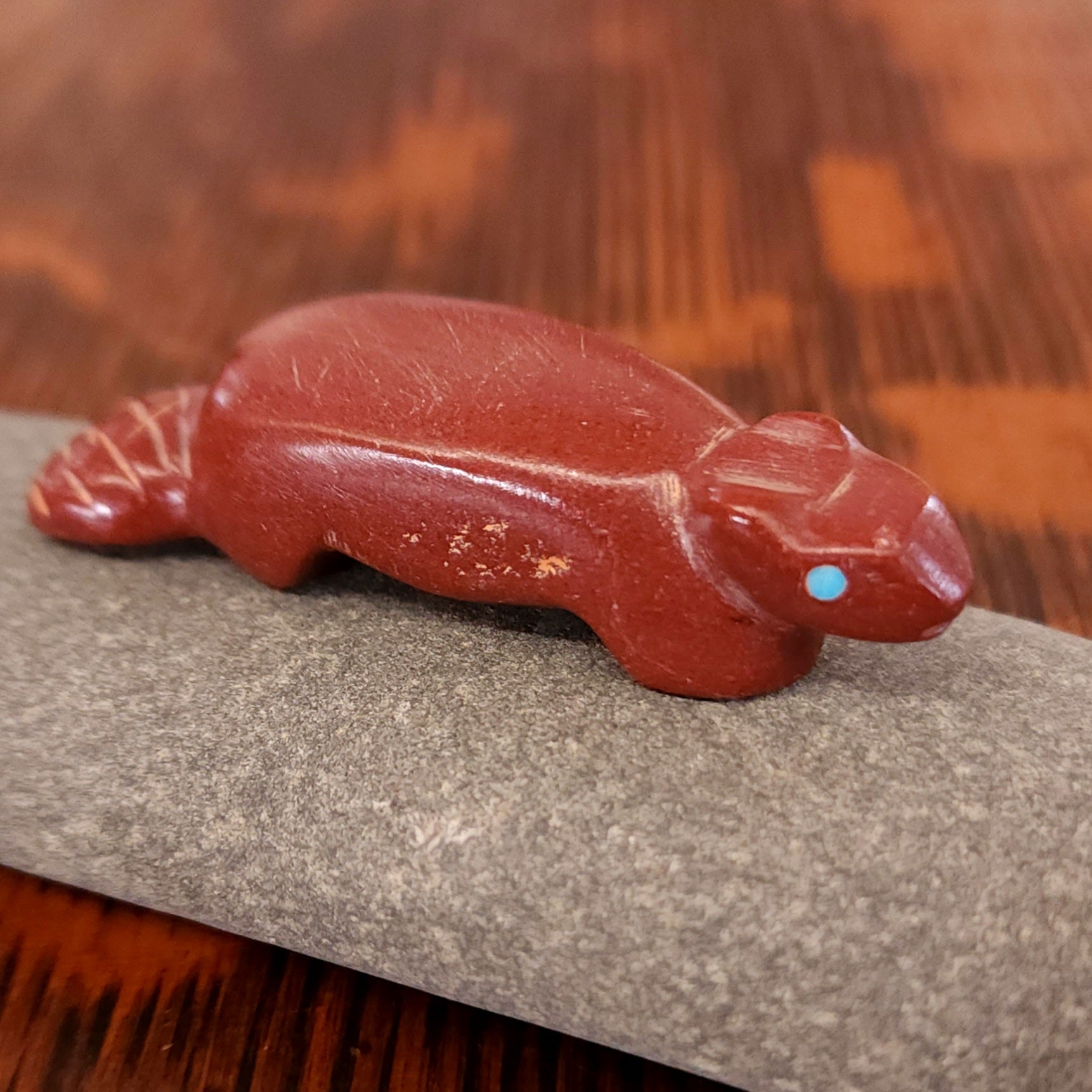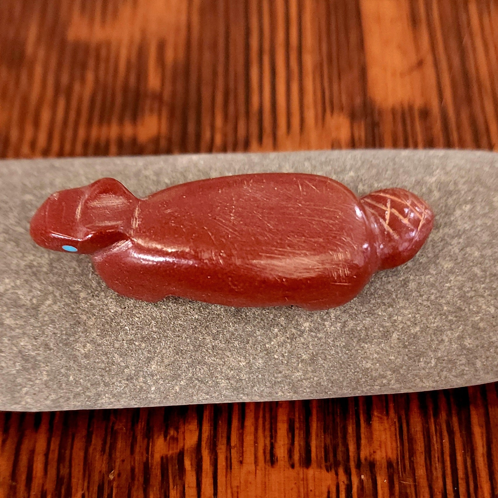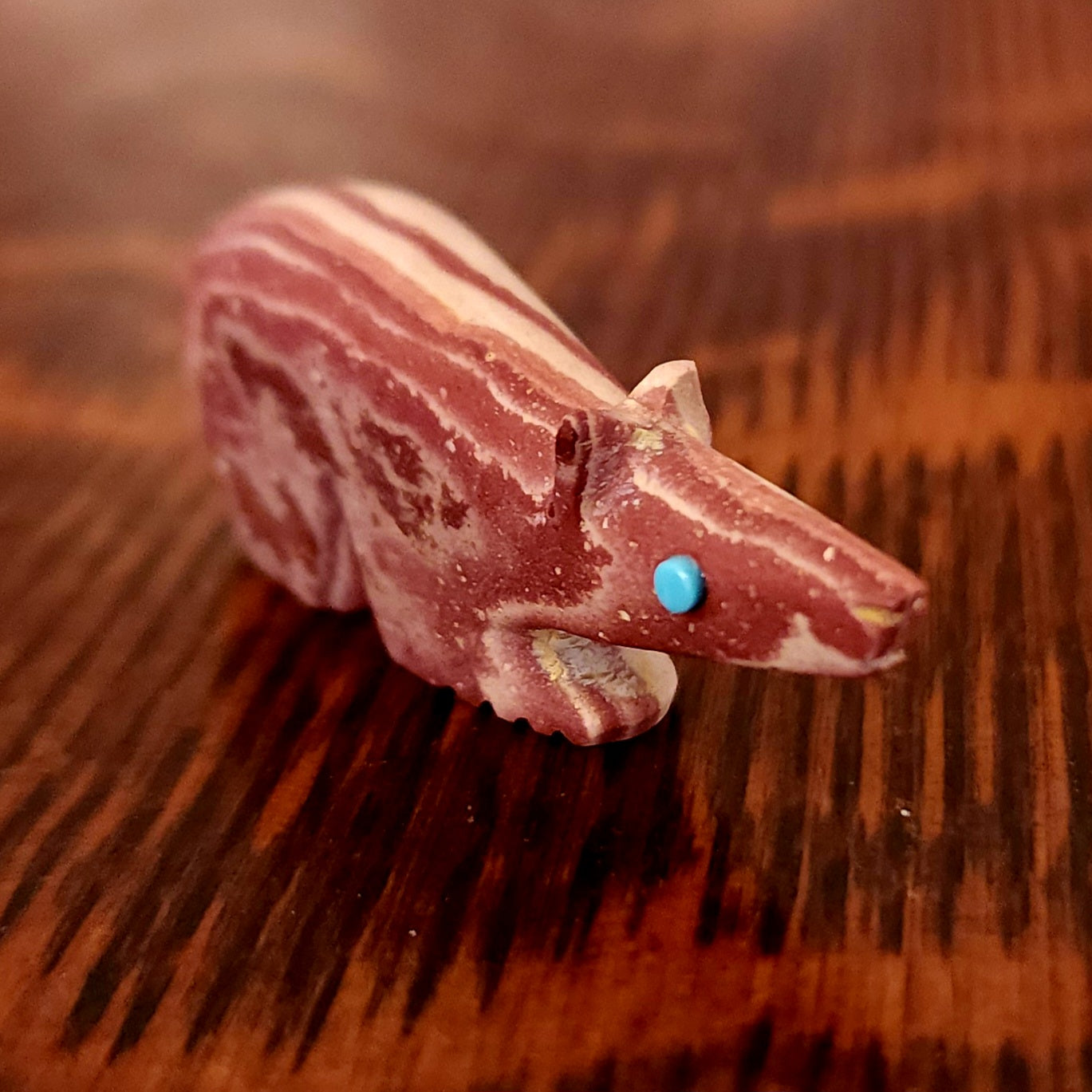 Wolves, coyotes and foxes all look the same in the distance. In Zuni there is a word that translates into "bushytail" in English. You get to determine what this carving looks like to you!
