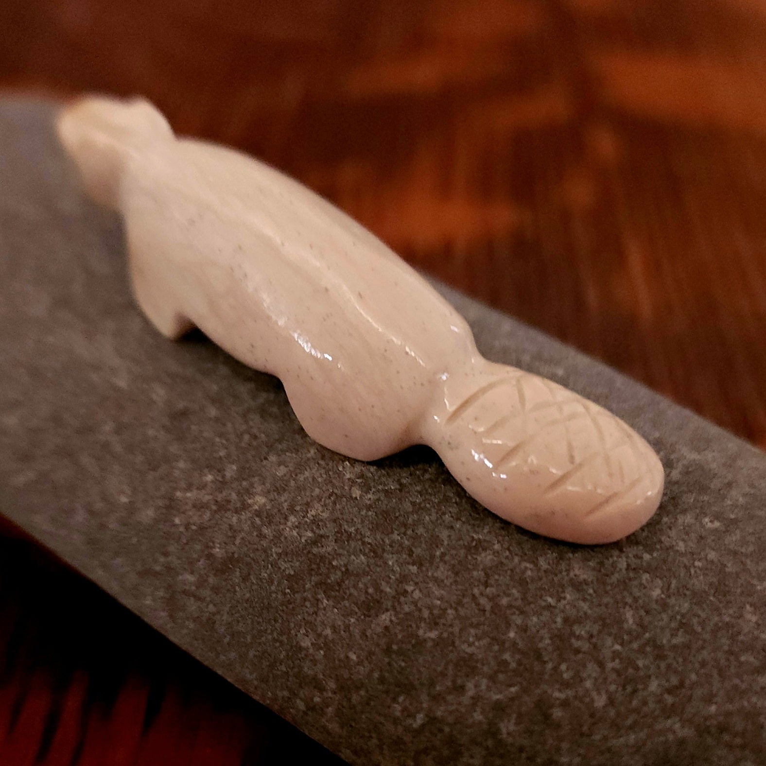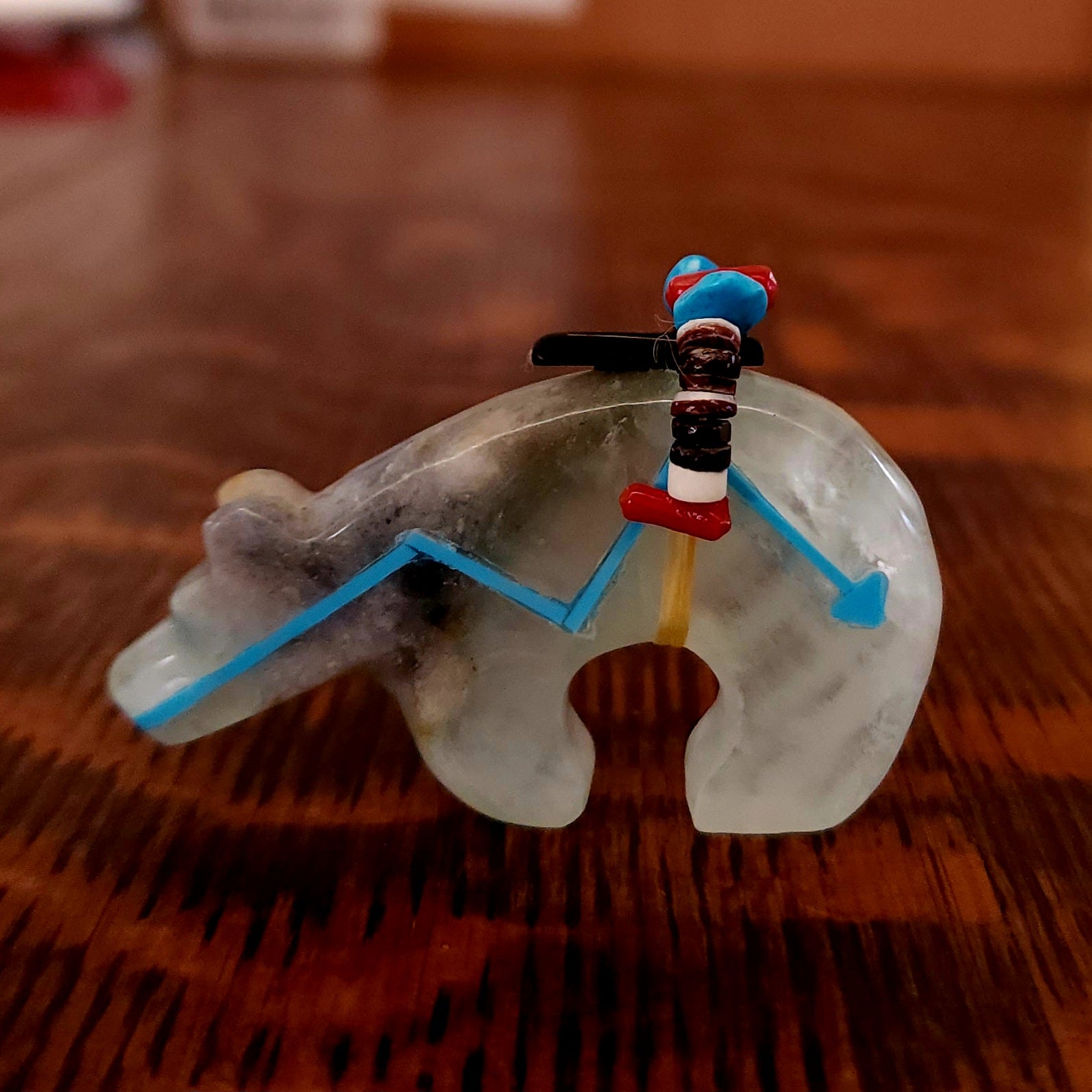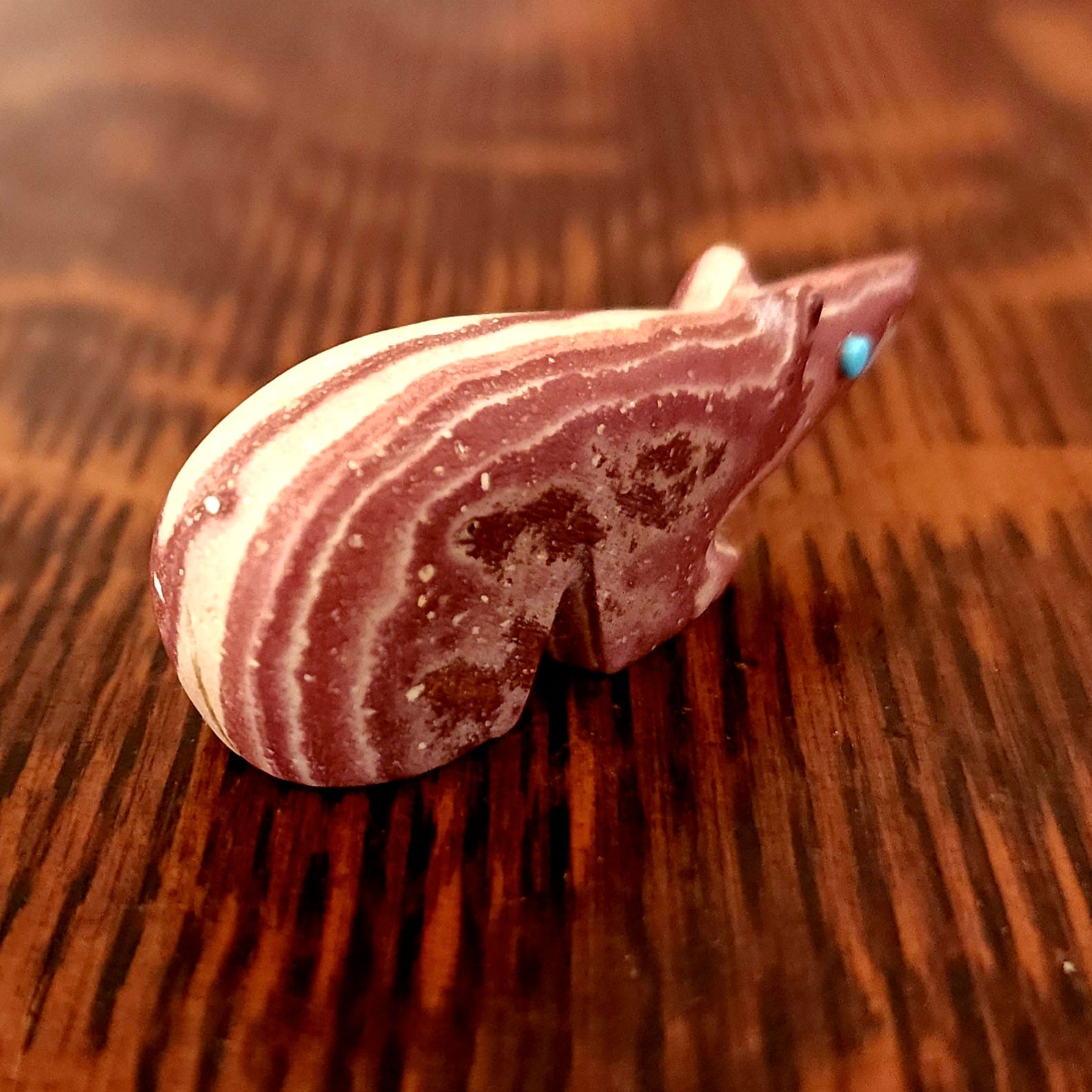 Wolves, coyotes and foxes all look the same in the distance. In Zuni there is a word that translates into "bushytail" in English. You get to determine what this carving looks like to you!